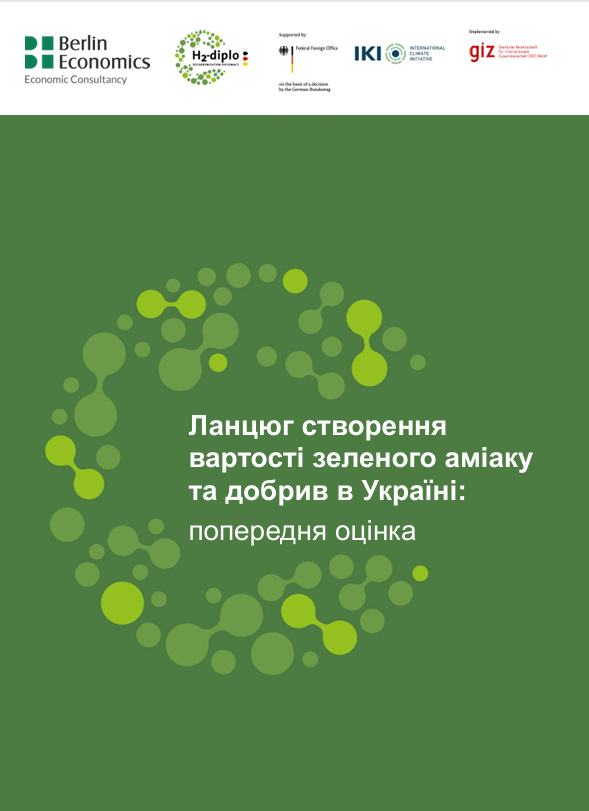 The H2-diplo – Decarbonisation Diplomacy project, implemented by Deutsche Gesellschaft für Internationale Zusammenarbeit (GIZ) on behalf of the German Federal Foreign Office, has released a Ukrainian-language version of the study “Green Ammonia and Fertilizer Value Chain in Ukraine: A Preliminary Assessment,” whose findings were first presented in December 2025. This is the first in-depth work to analyze the potential for green ammonia and fertilizer development in the Ukrainian context.