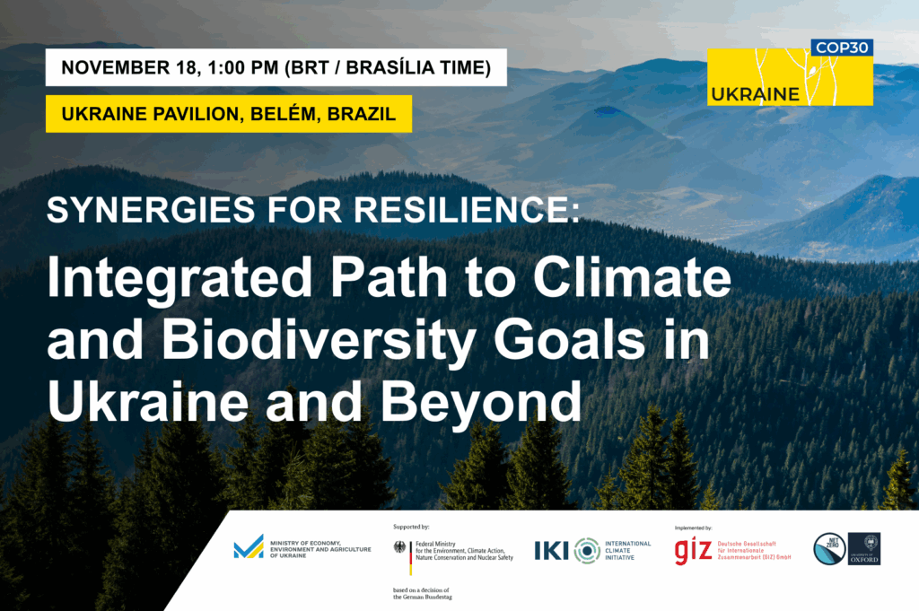 The event is organized at the initiative of the Ministry of Economy, Environment and Agriculture of Ukraine with the support of the IKI Interface Ukraine project and Oxford Net Zero. The project “IKI Interface: Supporting Ukraine towards Ambitious and Integrated Climate Policy (Green Ukraine)” is implemented by Deutsche Gesellschaft für Internationale Zusammenarbeit (GIZ) GmbH on behalf the Federal Ministry for the Environment, Nature Conservation, Nuclear Safety and Consumer Protection (BMUKN), within the framework of the International Climate Initiative (IKI).